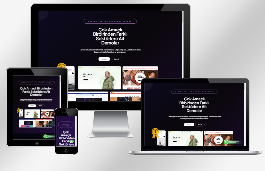 - Responsive butonları ile anlık olarak demoların tüm cihazlardaki görünümünü sunabilirsiniz.