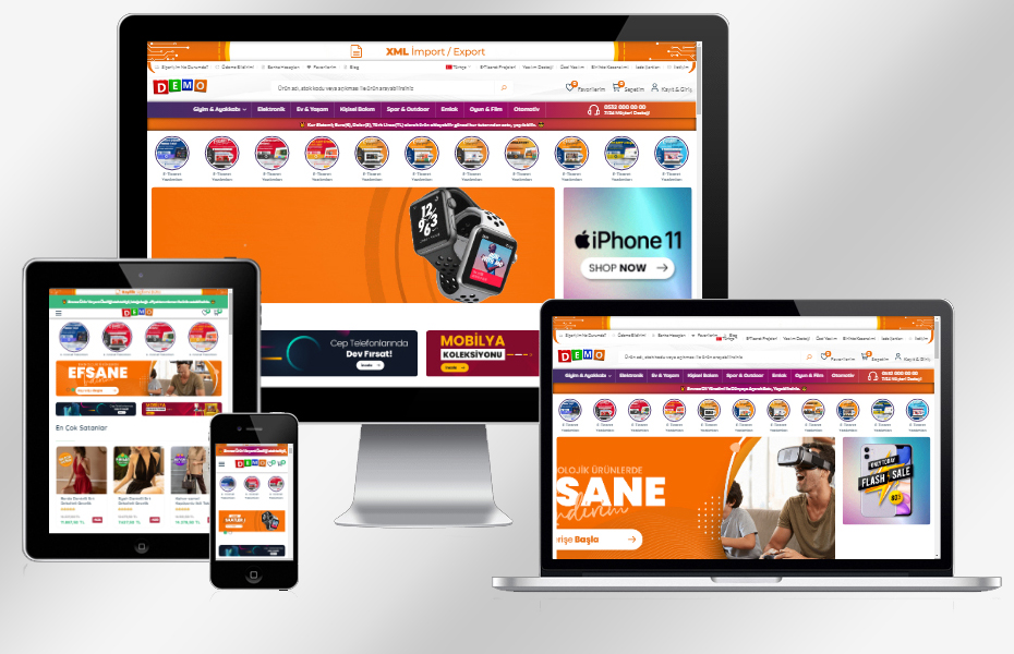 - Mobil Uyumlu Tasarım (Responsive) - Gelişmiş Türkçe Yönetim Paneli - Sınırsız Dil Yönetimi - Bayilik Sistemi ( b2b ) - Sınırsız bayilik grupları oluşturarak istenilen kategorin ürünlerine +Fiyat, -Fiyat, %+Fiyat, %-Fiyat tanımlamaları yapılabilir. - Oluşturulan bayilik gruplarına tanımlanan fiyat tanımlarının xml çıktısı alınabilir. - Kur Sistemi; Euro(€), Dolar($), Türk Lirası(TL) olarak ürün ekleyebilir güncel kur tutarından satış yapılabilir. - Xml İçeri Aktarma; İstediğiniz Xml adresinin yapısını tanımlayarak içeri ürün aktarabilir ve CronJob ile fiyat, stok kontrolü yapılabilir. - Xml Dışarı Aktarma; Sınırsız xml çıktıları oluşturarak istenilen kategorin ürünlerine +Fiyat, -Fiyat, %+Fiyat, %-Fiyat tanımlamaları yapılabilir. - Sınırsız Ürün Varyant Özelliği; ürünlerinize sınırsız varyant ve alt varyanları oluşturarak stok takipli, isteğe bağlı +Fiyat tanımlamarı ile ürün satabilirsiniz. - Müşteri Yönetimi - İstediğiniz müşteriye bayilik ataması yapılabilir. - Müşterinizin daha önceki sipariş geçmişini görebilirsinizç - Müşterinizin sepete eklediği ürünleri görebilir, sepetine ürün ekleyebilirsiniz. - Kategori Yönetimi; sınırsız alt kategoriler oluşturabilirsiniz. - Sınırsız Anasayfa hikaye özelliği. - Sınırsız Anasayfa slider ekleyebilirsiniz. - Sınırsız Anasayfa ürün vitrinleri oluşturabilirsiniz. - Sipariş etaplarınızı (Onay bekliyor, Tamamlandı, İptal Edildi vs..) sınırsız olarak ekleyebilirsiniz. - NetGSM sms entegrasyonu (Sipariş oluşturulduğunda, sipariş durumu değiştirildiğinde, şifre sıfırlandığında ve panelden istenilen numaraya sms gönderebilirsiniz) - PayTr Sanal Pos Ödeme Sistemi - İyzico Sanal Pos Ödeme Sistemi - Shopier Sanal Pos Ödeme Sistemi - Stripe Sanal Pos Ödeme Sistemi - Ödeme Yöntemleri: Online Kredi Kartı, Banka Havalesi, Kapıda Nakit, Kapıda Ödeme (+Fiyat Özellikli) - Smtp(Mail) ayarlarınızı yapabilirsiniz - Sınırsız olarak banka hesaplarınızı eklenebilirsiniz. - Sınırsız ürün marka özelliği - Sınırsız kurumsal iç sayfalarınızı ekleyebilirsiniz. - Sınırsız blog içeriği oluşturabilirsiniz. - Banka havalesi ödemesi yapan müşterileriniz için ödeme yapıldı bildirim sistemi - Sınırsız Anasayfa görsel destekli kampanya tanıtımı. - Sipariş Yönetimi - Genel özet; gün, hafta, ay, yıl olarak sipariş tutarınızı görebilir, Panelinizde son gelen 10 sipariş, son kayıt olan 10 kullanıcı, en çok satılan 10 ürün, en çok görüntülenen 10 ürünü takip edebilirsiniz. - Ürünler sayfanızdan istediğiniz ürünü tüm özellikleri ile kopyalayabilirsiniz. - Toplu Fiyat Güncelleme; Seçtiğiniz kategorilere ait ürünlere +Fiyat, -Fiyat, %+Fiyat, %-Fiyat olarak yeni fiyat tanımlaması yapabilirsiniz. - Toplu ürün aktif, pasif güncellemesi; seçtiğiniz kategorilere ait ürünleri aktif veya pasif olarak güncelleyebilirsiniz. - Panelde yüklediğiniz herhangi bir görseli anında crop özelliği ile gereksiz alanlardan kurtulabilirsiniz. - Kategori bazlı popup reklamı - Ürün eklerken sınırsız etiket tanımlası yapabilirsiniz. - Ürünlerinize yapılan müşteri yorumlarını onay/red ile yönetebilirsiniz. - Email ile bülten abone özelliği - Sınırsız yönetim paneli kullanıcısı oluşturabilir ve panel erişim yetkileri tanımlayabilirsiniz. - Upload edilen dosyaların adını orjinal hali ile kullanabilirsiniz. - Üyeliksiz sipariş oluşturma - Firma Bilgileri, Site Başlığı, Anahtar Kelime ve Site Açıklamasını Yönetim Panelinden Belirleyebilirsiniz.